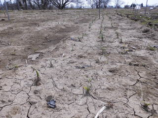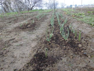 越冬後のタマネギ。これから土寄せし追肥して行きます。