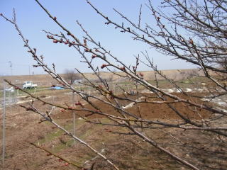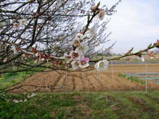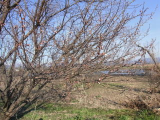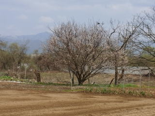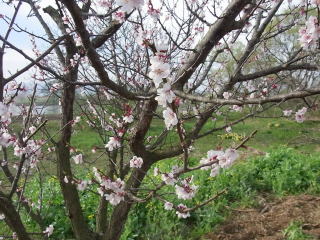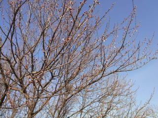 左小ウメ3分咲き。右・豊後梅1分咲き。春は通り過ぎていくようです。 2011.04.24 12:01 撮影
