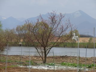 ツボミが大きく膨らんできましたが、写真奥に残雪を