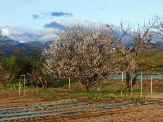 小ウメ8分咲き。授粉しているといいのですが。花自体は見頃